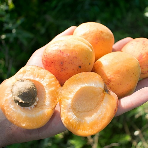 Саженец абрикоса Харгранд радует высоким выходом плодов, которые начинают созревать на 2-3 год после посадки. Созревание происходит в первой половине августа — время, когда у вас есть возможность насладиться гармоничным вкусом оранжевых абрикосов с легкой кислинкой и медовым привкусом. Каждый плод весит 70-80 граммов и имеет овальную, слегка приплюснутую форму, покрытую почти гладкой и тонкой, но плотной кожицей с ярким румянцем. Мякоть же обладает сочной и маслянистой текстурой, с высоким содержанием витаминов и полезных микроэлементов.