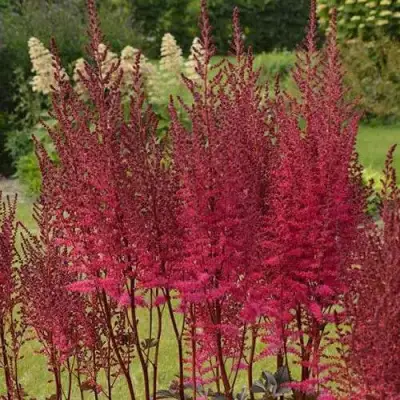Астильба Майти Чоколат Черри порадует вас разветвленными, пышными соцветиями, окрашенными в глубокий вишневый цвет. На стадии полураспуска цветы выглядят, словно покрытые шоколадной дымкой, а в полном цвету они сияют яркостью, притягивая взгляды.