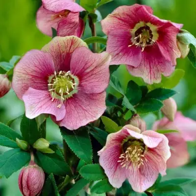 Цветки появляются с конца февраля — одного из самых неблагодарных месяцев в саду. Диаметр венчиков — до 8 см, окраска — кремово-зеленая с розовым оттенком. Бутоны слегка поникают, что защищает их от осадков и придаёт цветению особую камерность. Цветёт морозник до мая, а при стабильной погоде — и дольше.