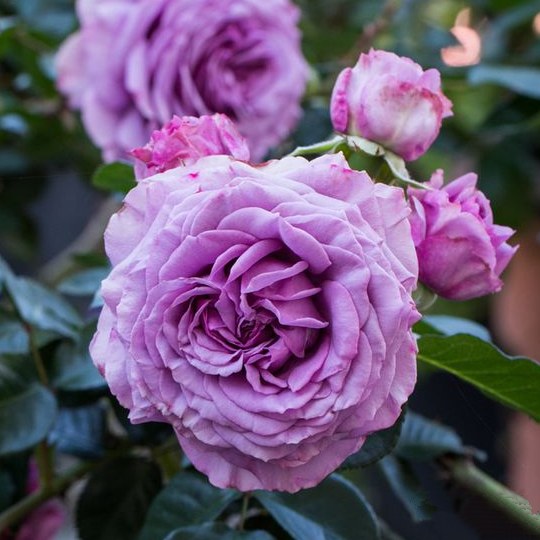 Сильвер Квик формирует крепкий куст с гибкими побегами, способными подниматься на 2–2,5 метра, а при правильной поддержке и уходе – до 3–4 метров. Ширина куста около 1,2–1,5 метра, крона плотная и декоративная, хорошо облиственная. Листья крупные, глянцевые, насыщенно-зелёные, создают красивый фон для сиренево-лиловых махровых цветов. Побеги активно ветвятся, обеспечивая пышный и аккуратный вид даже на ограниченном пространстве.