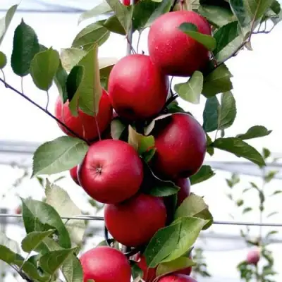 Дерево яблони Эра имеет небольшую крону и темно-вишневые ветви, акцентирующие внимание на темно-малиновых цветках. Плоды данного сорта имеют темно-красную окраску, круглую форму и идеальный вес - 160 граммов. Вкус плодов яблони Эра отличается гармоничным сочетанием кислот и сахаров, делая его идеальным для универсального использования.